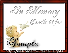The candles in the candle room will be linked to the memorial or relative's website to guide anyone who would like to leave a prayer or thought. If you would prefer not to have it linked, please let me know in the COMMENT SECTION of the form. No other information will be used for any other purpose but the Eternal_Lights Organization.